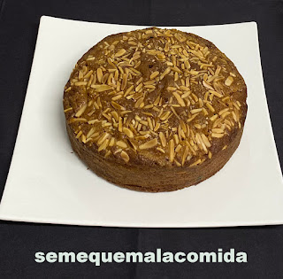 Se bate la mantequilla con los azúcares hasta que esponje, echar lentamente los huevos, utilizar una espátula para despegar de las paredes la mezcla. Se tamiza la harina con la almendra y las especias y se añade a la masa un tercio de cada vez hasta que esté toda integrada. Se añaden la ralladura de naranja, la fruta confitada y las cerezas con cuidado. Se vierte en el molde, se nivela, se espolvorea con el azúcar y las almendras laminadas y se hornea a 160ºC durante una hora y cuarto. Ser pincha, si no está, se cubre con papel aluminio y se tiene 5 o 10 minutos más. Enfriar en el molde 15 minutos y pasar a una rejilla para que enfríe del todo. Se mantiene 5 días en un recipiente hermético.